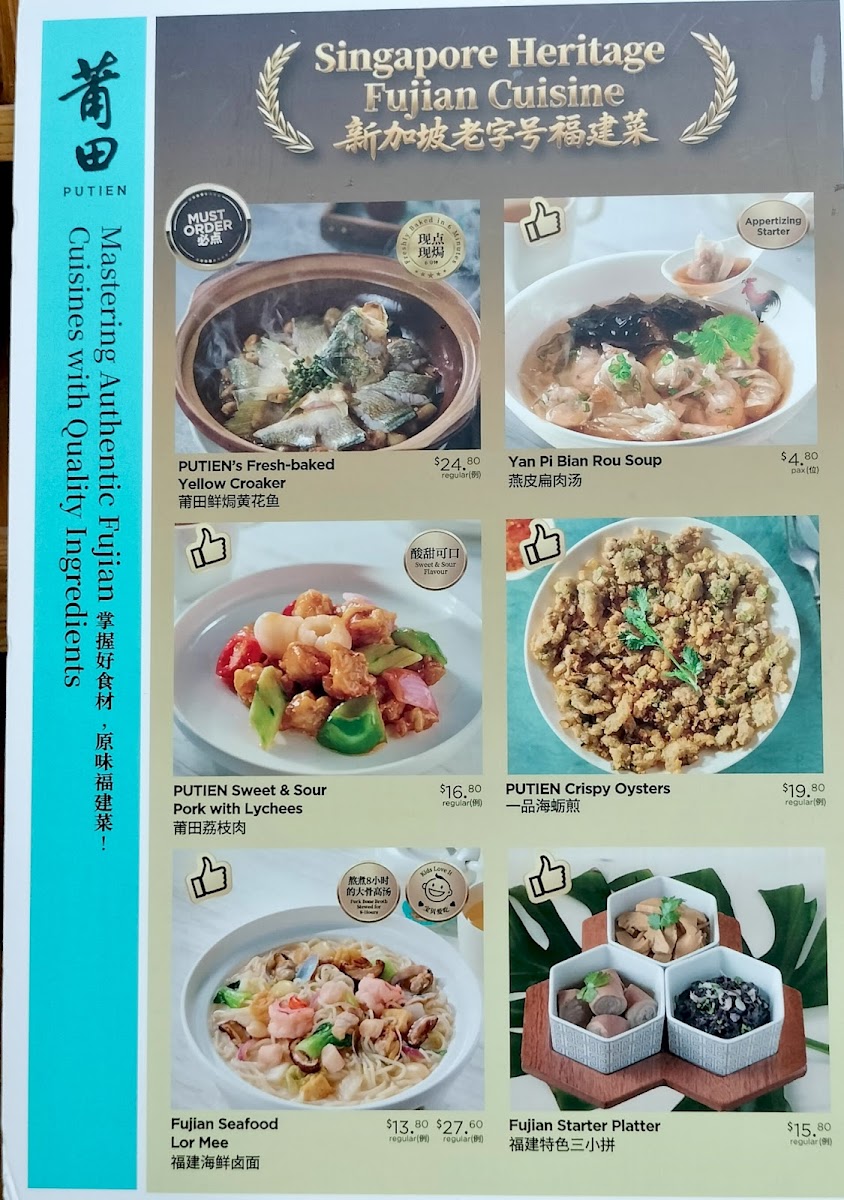 Nestled within the bustling Singapore Post Centre, Putien Singpost Centre Menu offers a delightful culinary journey that draws inspiration from the heart of Putian, China. From the moment you step inside, you'll be welcomed by the inviting aroma of fresh, authentic dishes crafted with care and tradition. Whether you're in the mood for a comforting bowl of noodles or a flavorful seafood feast, each dish promises a burst of flavors that capture the essence of coastal Putian cuisine. The menu features a range of expertly prepared options, including signature soups, delectable stir-fries, and mouthwatering specialties that are perfect for both casual dining and special occasions. The combination of quality ingredients and time-honored recipes ensures every bite is a memorable experience.